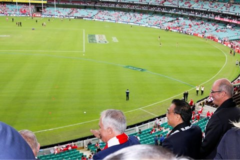 观看澳式足球比赛,在李克强总理此次出访行程中备受关注。在两天前的欢迎午宴上,特恩布尔和反对党领袖肖顿都向李总理推荐自己故乡的球队。而在25日下午的致辞中,特恩布尔再次表示,他非常高兴能在自己的故乡、悉尼天鹅队的主场,和李克强总理一起观看本赛季的首场比赛。“这显示出澳中两国的合作正在拓展到越来越广阔的领域,包括在体育人文领域的合作。”