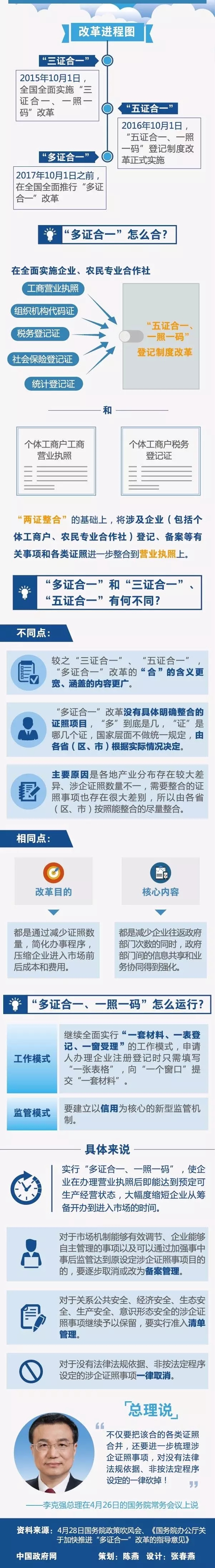 国务院力推的"多证合一"来了!办事创业将少跑这些腿,多享这些便利!