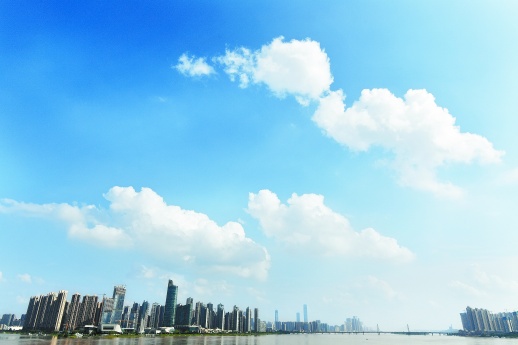 7月15日,长沙天气晴好,湘江上空蓝天白云美如画。本月11日以来的强降雨过程趋于结束。田超 李鑫 摄影报道