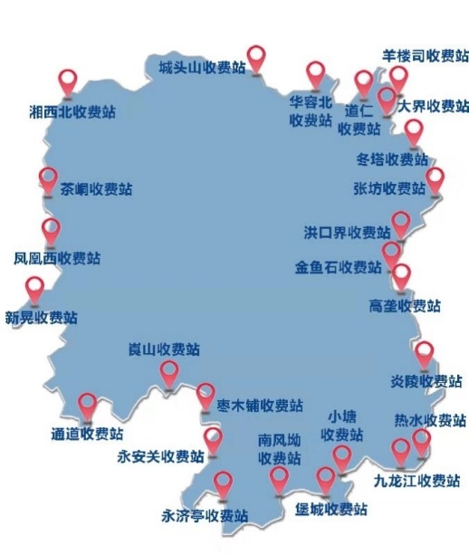 湖南省与湖北、江西、广东、广西、贵州、重庆等省市自治区之间,共有25个跨省收费站。