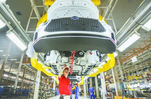 8月14日,长沙市比亚迪汽车有限公司,工人在装配新一代智感电动跨界车。目前,湖南拥有长沙比亚迪、长沙众泰、中车时代电动、长丰集团等13家新能源汽车生产企业和全国产品最齐全的电池材料产业集群,初步形成了新能源汽车完整产业链。今年1月至5月,全省新能源汽车产量同比增长622.13%。(记者 辜鹏博 通讯员 张伟 摄影报道)