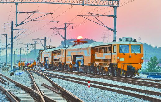 8月14日,黔张常铁路常德市段,中铁三局工作人员正进行线路捣固与稳定作业。该铁路规划线路总长339公里,设计时速200公里。目前,铁路建设接近尾声,将于9月进行联调联试,计划年底通车。(记者 李健 通讯员 王毅博 摄影报道)