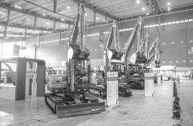 5月14日,2019长沙国际工程机械展览会现场展出的山河智能挖掘机。