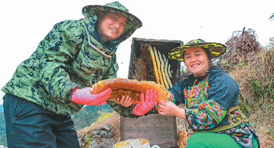 龙先兰夫妇在查看蜂巢。龙艾青摄