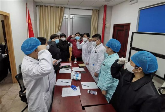 “我承诺:严阵以待,备战有我!担当作为,冲锋有我!休戚与共,胜利有我!”1月23日,在临时设置的医学观察病房,湖南中医药大学第一附属医院抗击新型冠状病毒感染肺炎临时党支部正式成立,党员们举起右手,庄严承诺,在这场没有硝烟的战场上,危机时刻党员们应声而到,铿锵有力的誓词诠释着党员的担当使命。