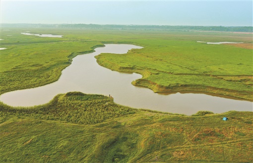 4月4日,湖南汨罗江国家湿地公园,江滩上绿草如茵,环境优美。近年,汨罗市在湿地开展专项整治,自2018年起,还实行封洲禁牧。目前,汨罗江水生态环境大大改善。 湖南日报记者 田超 摄