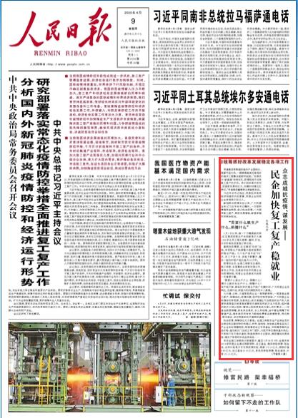 《 人民日报 》( 2020年04月09日 01版)