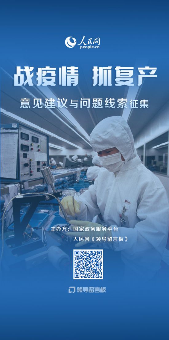 受“国家政务服务平台”委托,人民网《领导留言板》2月28日推出“战疫情 抓复产——意见建议与问题线索征集”平台。全国各地围绕落实“六保”任务,努力克服疫情造成的不利影响,全面助推复工复产。截至2020年7月7日,各级领导干部答复网民留言28050件,涉及小微企业减租降息、返岗交通、企业审批等问题。
