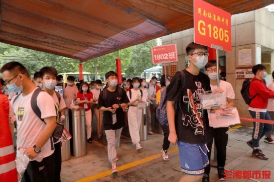 为了让考生顺利参考,各高中学校也开展了暖心的送考工作。在长沙市周南梅溪湖中学,考生按班级有序乘坐大巴车前往考点。“天气忽晴忽雨、考试延期、考试也有变化,为了缓解考生情绪,老师们全程护考。”该校校长叶双秋说,高二年级全体老师担任考生的“护考使者”,将考生送进考点,并一直守候在考场外,为考生加油鼓劲。
