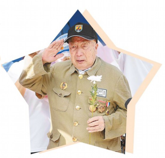 8月5日上午,衡阳县洪市镇明翰村,94岁高龄的“鸿翔部队”抗战老兵谢慈友,向昔日战友、抗日英烈致敬。何衡 钟仲华 摄影报道