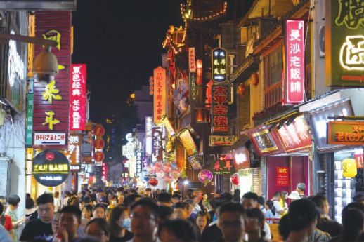 长沙太平街火爆的夜经济吸引了不少游客前来打卡。记者 王珏 摄