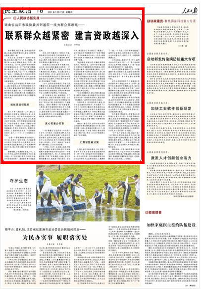 “社区能够解决的,就让问题化解在基层;基层不能解决,就发挥委员专业优势和政协作为专门协商机构的特点,推动多部门协调解决。”益阳市政协委员王雄说。